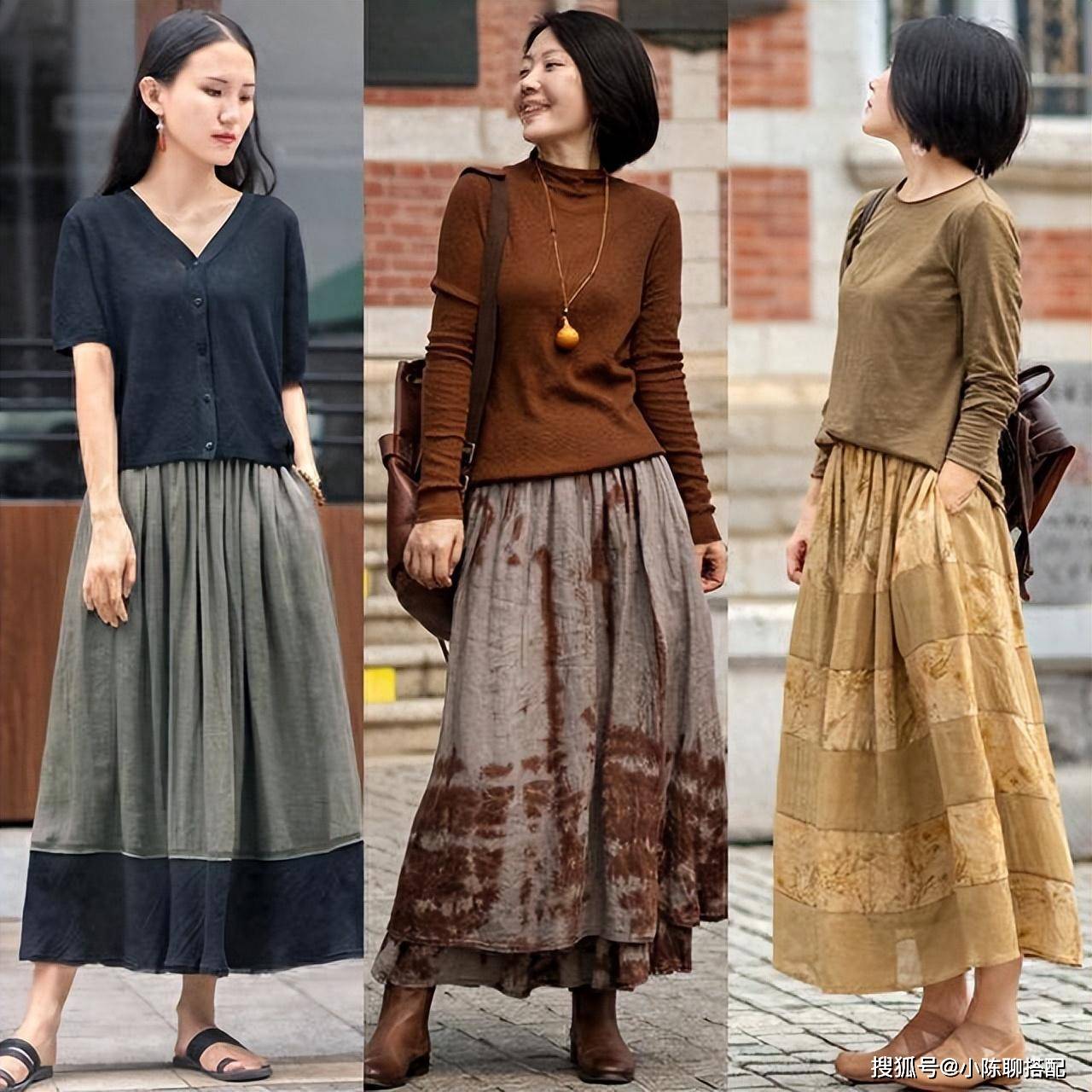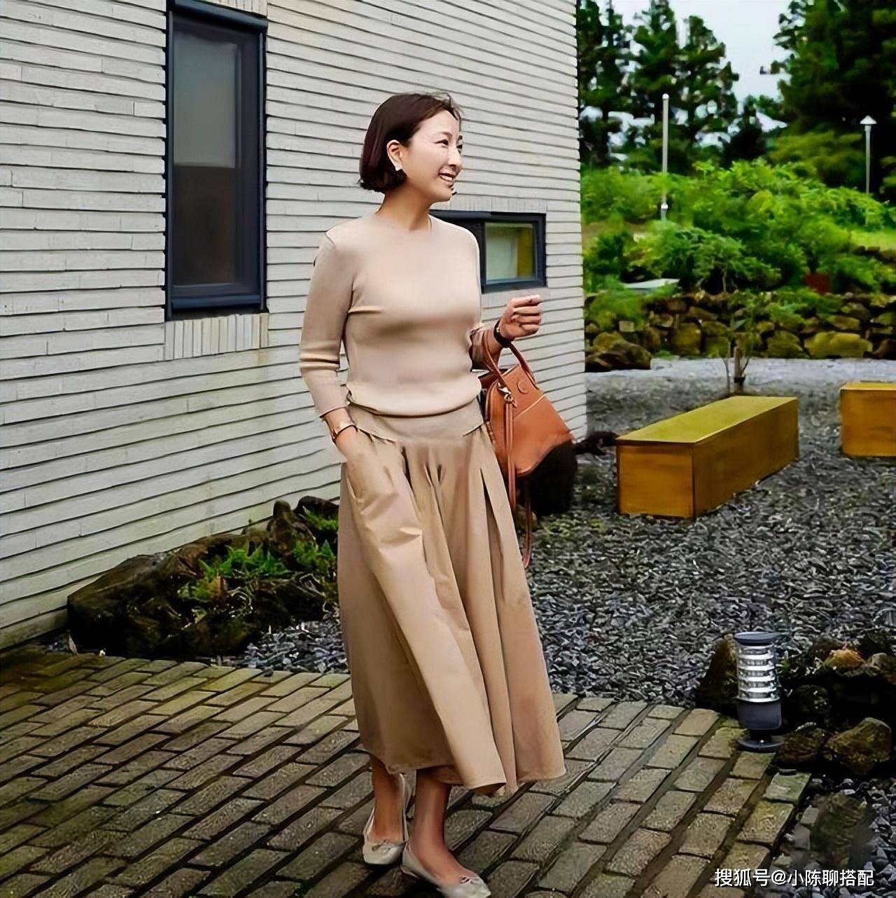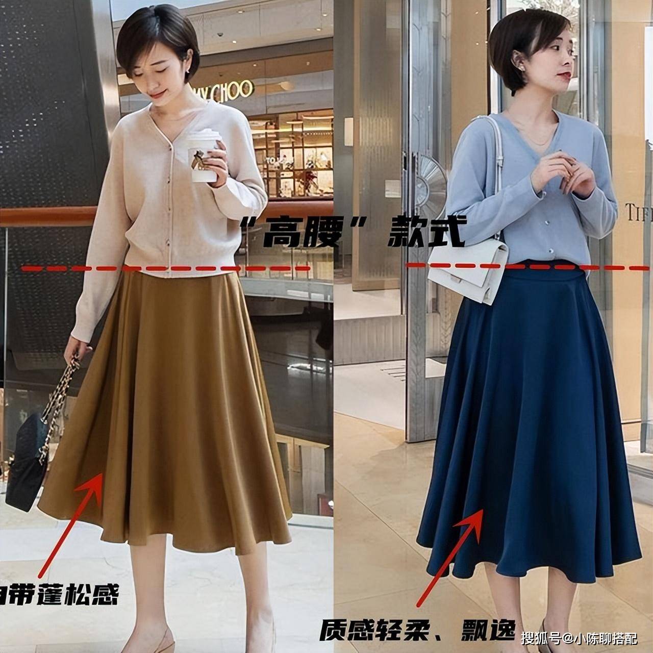 大摆裙也是秋天最常见的选择,但需要注意的是,当裙摆大的时候,材质就一定要柔顺且具有良好的垂感。柔顺的材质能够顺应身体曲线自然下垂,形成流畅的线条,减少因裙摆过大而产生的横向扩张感。