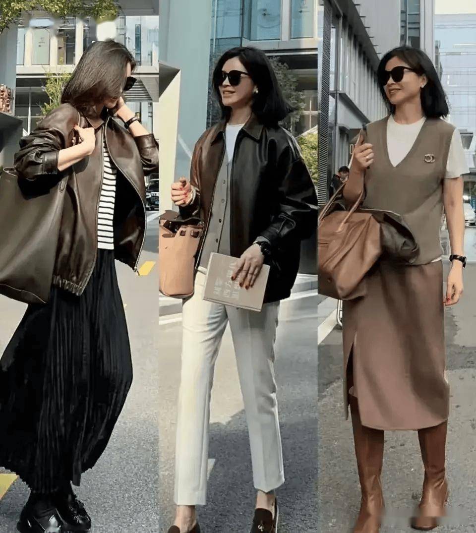 越简单越高级 松弛感就是让人觉得轻松自由,不必为了追求潮流而陷入过度设计的陷阱,让穿着变得啰嗦又繁复。 秋天我们在选款时,越简单的设计越容易穿出松弛感,而且更为百搭,轻松就可以打造出高级的品质感来。比如咖色的廓形皮衣,简洁大气完全没有修饰,却足够撑起两米八的强大气场,搭配利落的白色烟管裤,更显得清爽高级了。