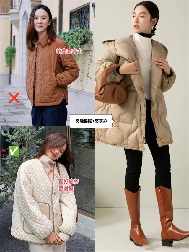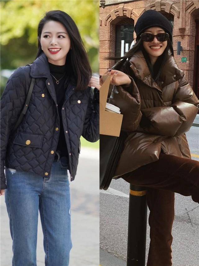 而细压褶的绗缝羽绒服则更适合想要营造时尚感的姐妹,因为密集的压线能营造出丰富的层次感,穿起来特别有高级感。