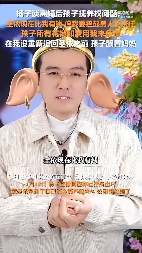1月18日,官宣和黄圣依彻底分开后,杨子直播回应抚养权、财产分配等问题。
