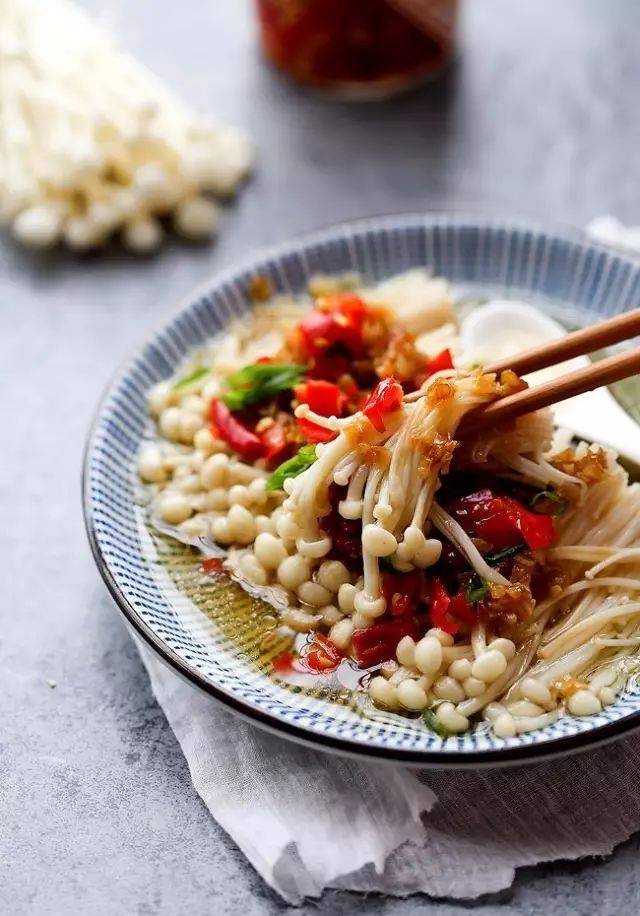 剁椒金针菇酸辣爽口,简单易做,可以为餐桌增色不少。