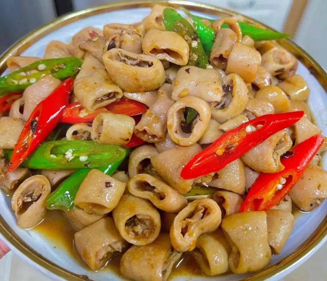 1、准备食材:猪大肠、食盐、陈醋、面粉、小葱、生姜、料酒、啤酒、生抽、老抽 2、卤猪大肠的做法: (1)猪大肠处理清洗干净切段,小葱洗净切葱花,生姜去皮切片备用。 (2)大肠冷水下锅,加入适量的小葱、生姜、料酒焯水片刻,捞出沥干水分备用。 (3)另起锅下入猪大肠,倒入适量我啤酒和清水漫过食材。 (4)加入适量的干辣椒、生姜、八角、花椒、香叶、桂皮、小茴香、冰糖、豆蔻、草果、白芷、食盐、蚝油、老抽盖上锅盖。 (5)大火炖开转小火,炖20分钟左右即可,再焖一小会让猪大肠更入味,猪大肠肥而不腻,嚼劲十足,下酒菜爸爸喜欢吃!