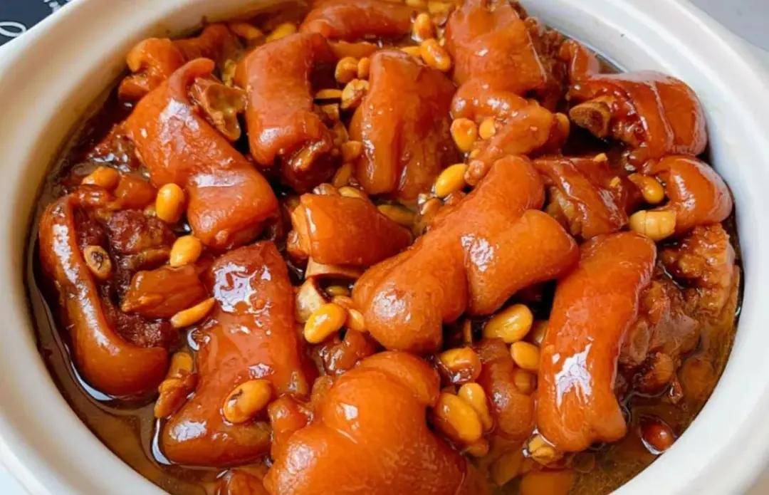 1、准备食材:小猪蹄、黄豆、小葱、生姜、桂皮、香叶、生抽、老抽、蚝油、料酒、冰糖、啤酒、食盐 2、黄豆焖猪蹄的做法: (1)猪蹄处理清洗干净切块,黄豆泡发,小葱切段,生姜去皮切片备用。 (2)猪蹄冷水下入锅中,加入适量的小葱、生姜、料酒焯水片刻,捞出沥干水分。 (3)锅中热油爆香小葱生姜和八角,再下入猪蹄,加入适量的生抽、老抽、蚝油、香叶、桂皮、适量的啤酒。 (4)盖上锅盖焖25分钟左右,开锅下入黄豆,再盖上锅盖炖20分钟左右。 (5)关火出锅装盘即可开吃了,猪蹄软糯入味,做法简单,爸爸喜欢吃!
