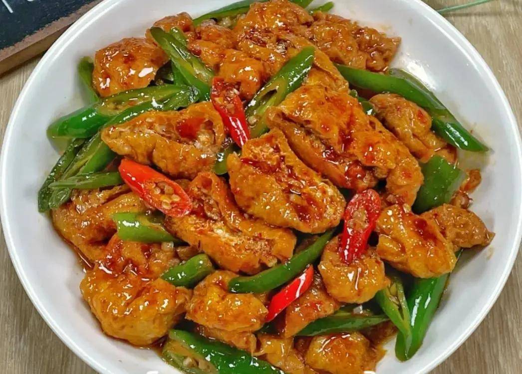 1、准备食材:辣椒、豆腐泡、蒜瓣、小米辣、生抽、蚝油、食盐、白砂糖、豆瓣酱 2、辣椒炒豆腐泡的做法: (1)辣椒洗净切段,蒜瓣剥皮切末,小米辣切圈,豆腐泡泡软备用。 (2)锅中热油爆香蒜末和小米辣,下入豆腐泡和辣椒翻炒变软。 (3)加入适量的豆瓣酱、生抽、蚝油、食盐、白砂糖、适量的清水翻炒均匀。 (4)关火出锅装盘即可,做法简单下酒又下饭,是爸爸喜欢吃的一道家常菜!