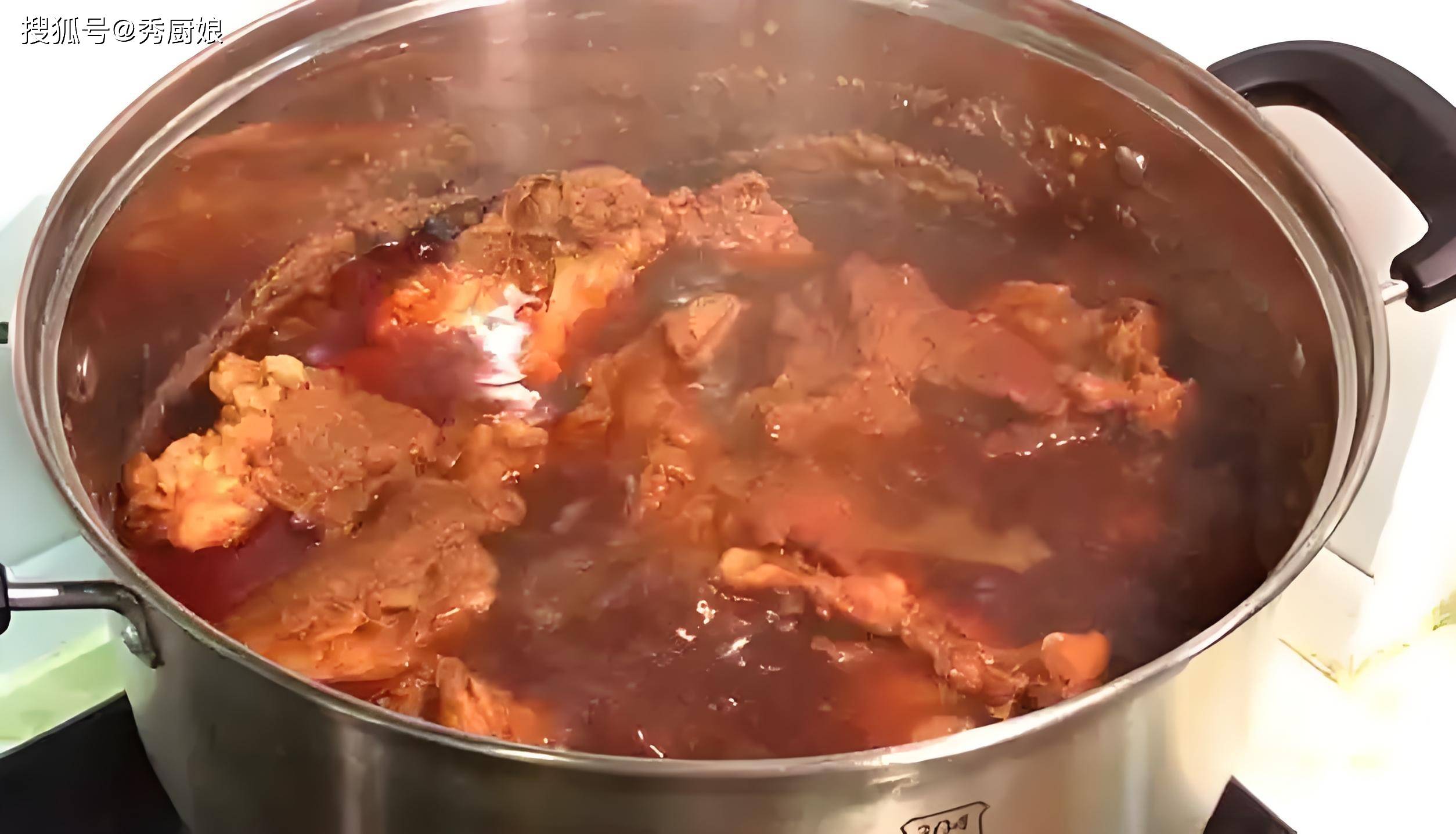 1、撇净浮沫后,此时可以加入足量的热水。水量要一次加够,大致是牛肉的2-3倍。 2、再次烧开后,立刻转成最小火,盖上锅盖(留条小缝更好)。 砂锅慢炖至少需要 2-2.5小时(牛腩时间稍短,牛腱子可能更长)。高压锅虽然快(上汽后约40-50分钟),但风味沉淀不如慢炖醇厚。