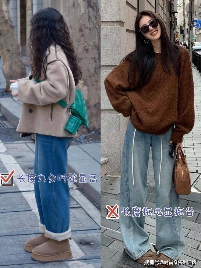 其次关于阔腿裤的长度我们也不能忽略选择,毕竟选择合适的长度才能更好的优化腿部线条,像是拖地长度的阔腿裤视觉上看起来好像非常有气场,但是对于小个子女生来说穿在后很容易出现拖沓累赘的现象。那么最好的方式就是可以选择九分和露出鞋面的长度,秋冬季节选择这样的长度不仅可以拉长腿部线条,同时还能避免会拉低身高重心。