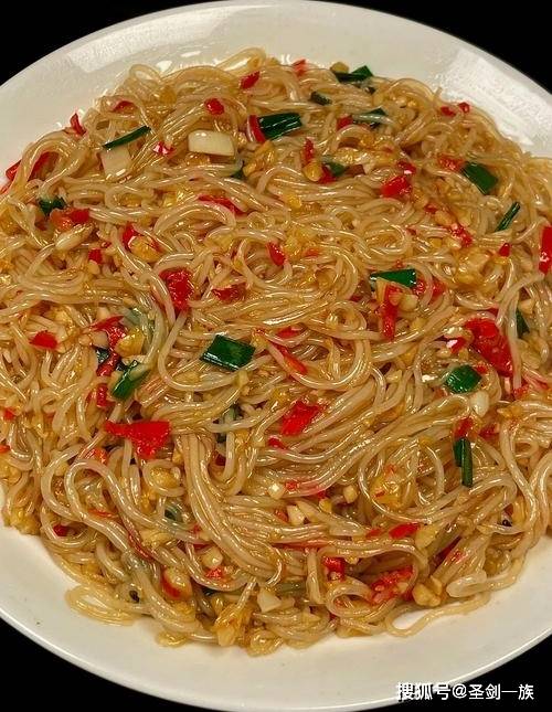 6、临出锅前撒入葱花,再翻拌均匀,关火装盘即可享用这道蒜香四溢的米粉。