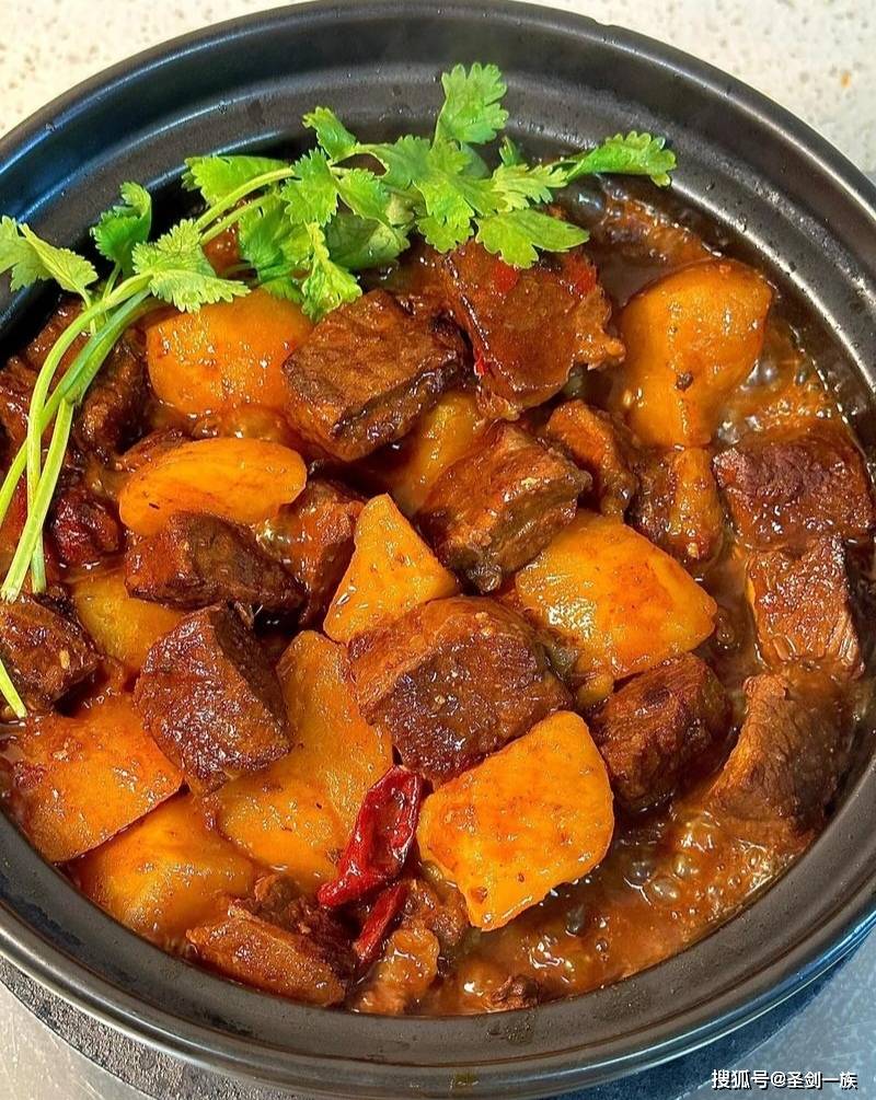 6. 加入没过牛腩的清水,大火烧开后转小火炖煮1 - 1.5小时,至牛腩软烂。
