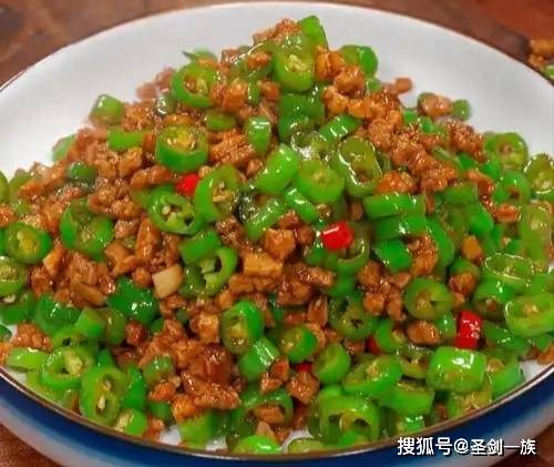 2、起锅烧油,油热放入牛肉末,煸炒至变色,放入蒜末,翻炒出香味,放入切好的线椒丁,翻炒至断生,淋入调好的料汁,大火翻炒均匀即可出锅。