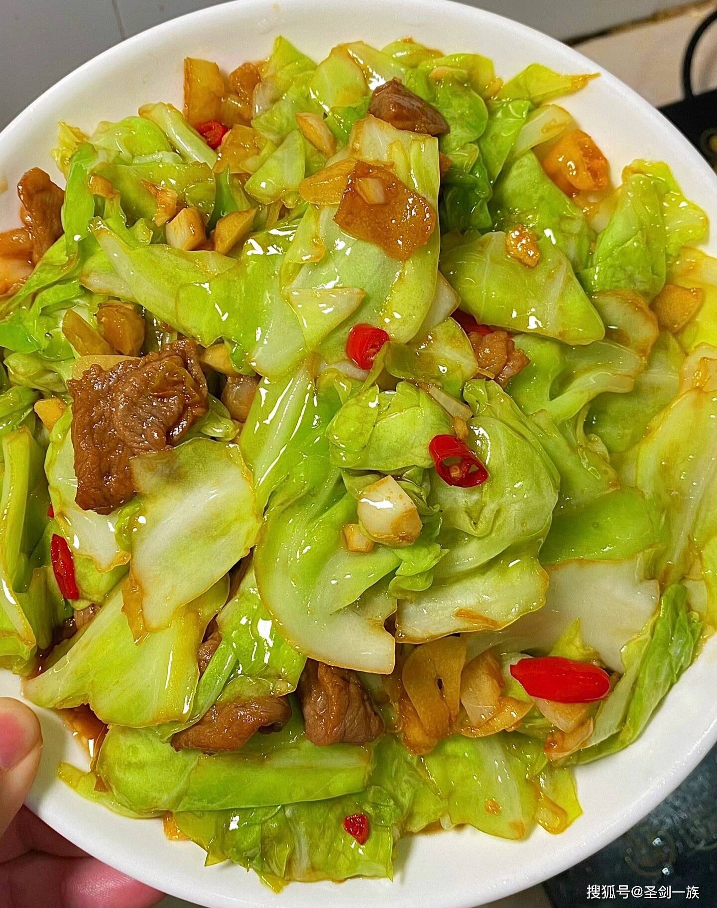 3. 倒入包菜大火快速翻炒,保持爽脆口感