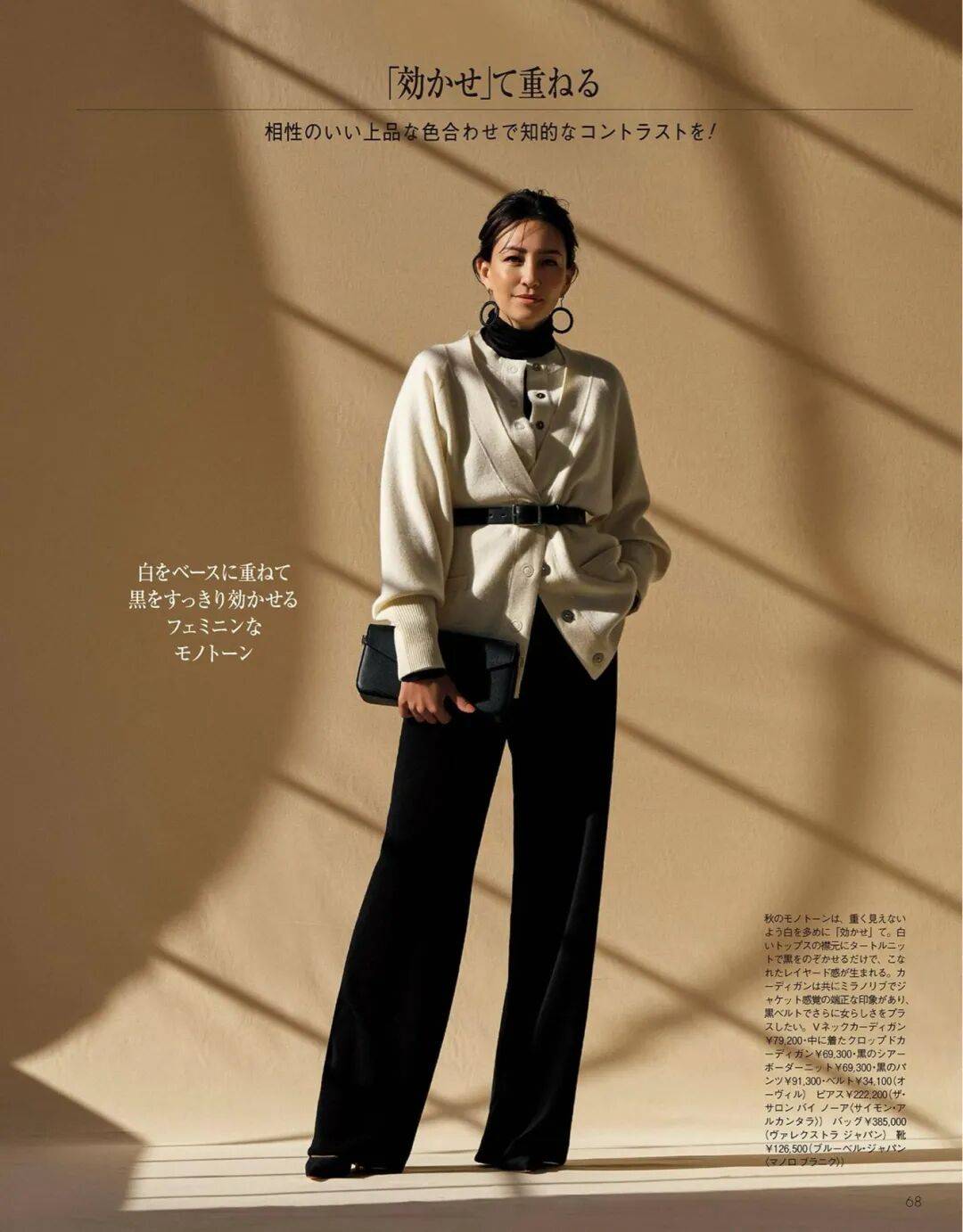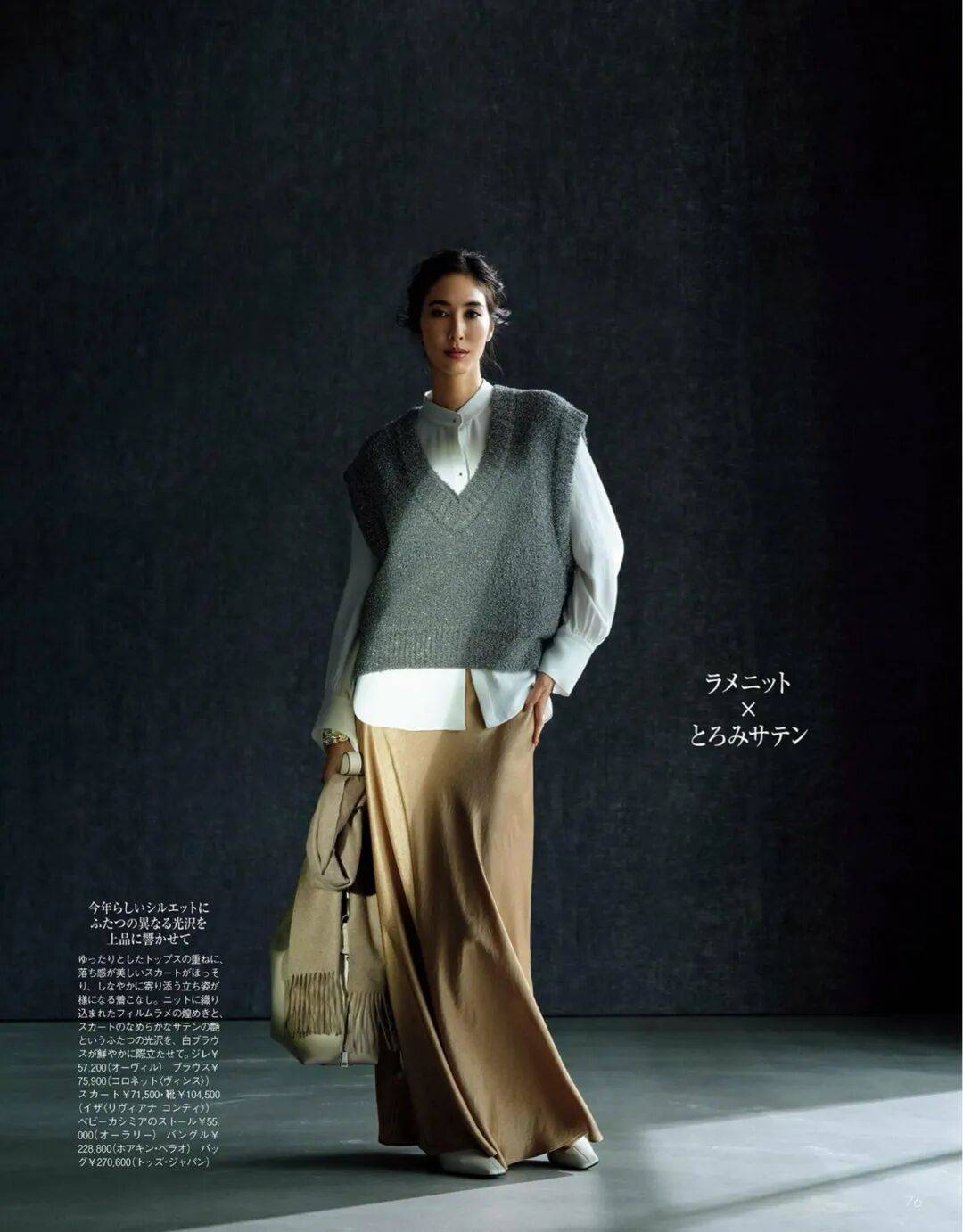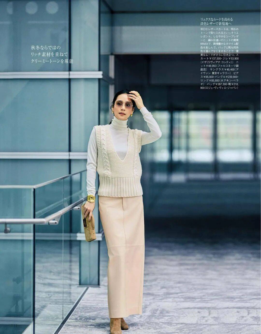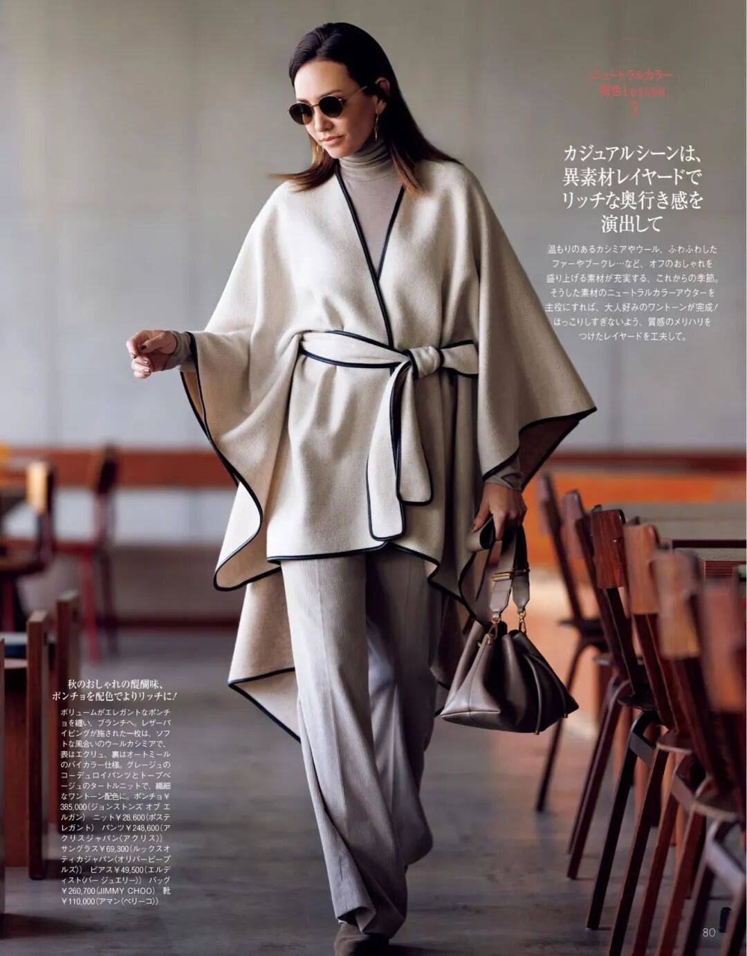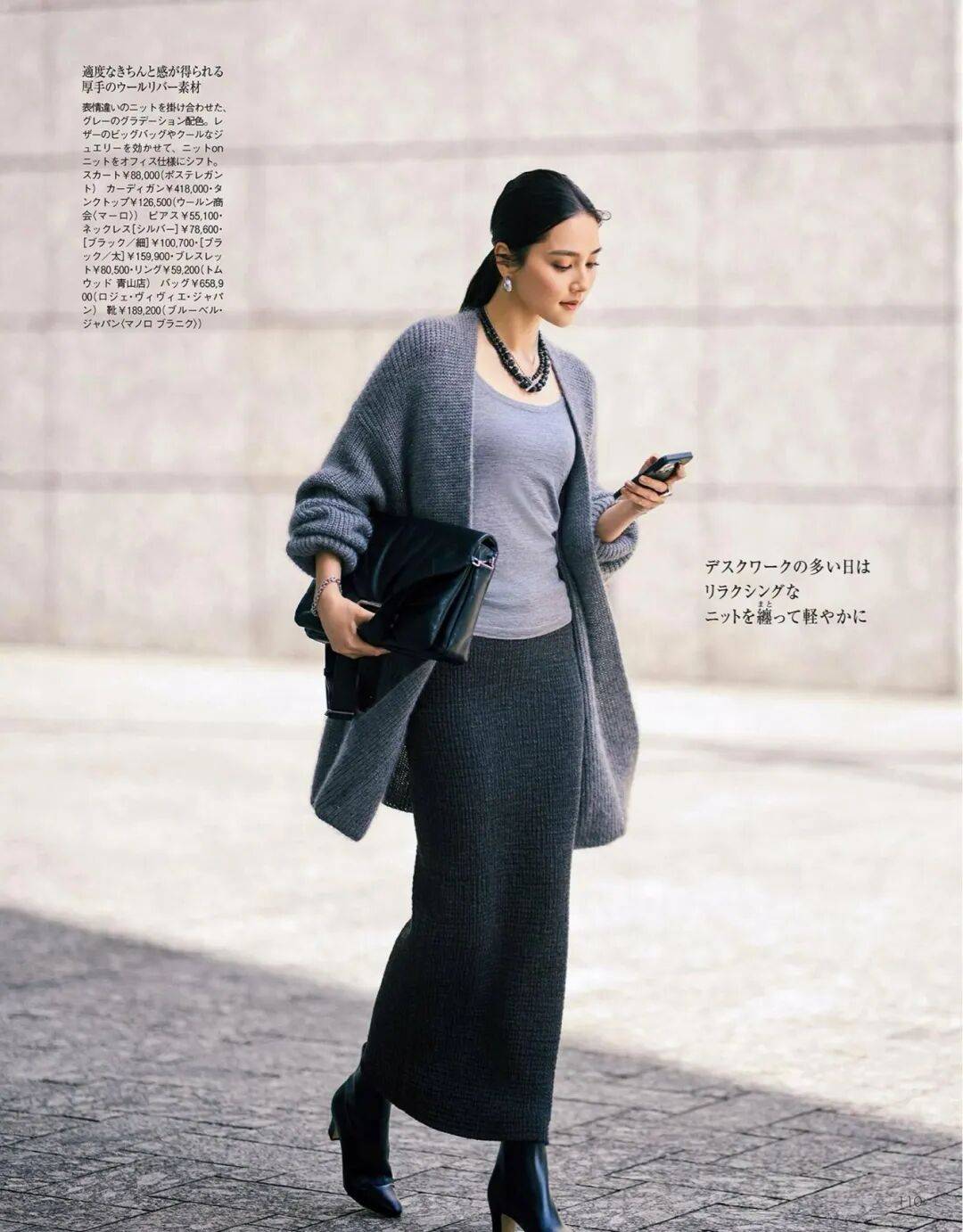 呢质的厚、针织的柔、皮革的亮,它们在同一色系中互相调节,让一身造型既有层次又不显杂。