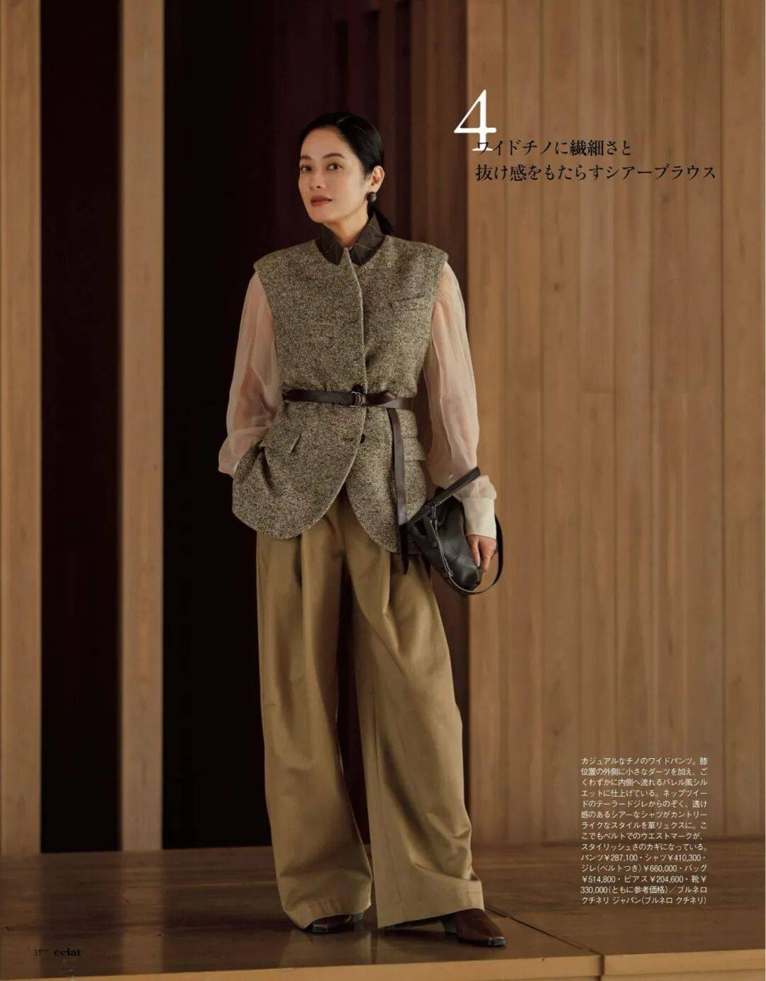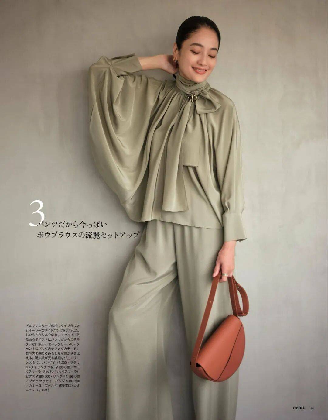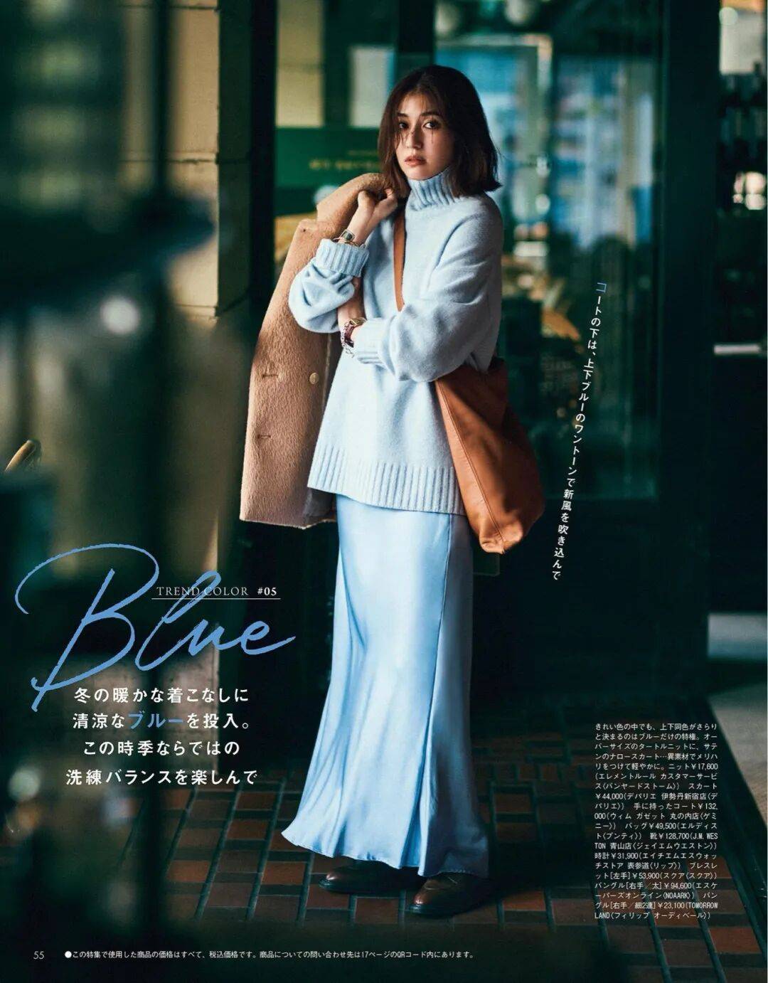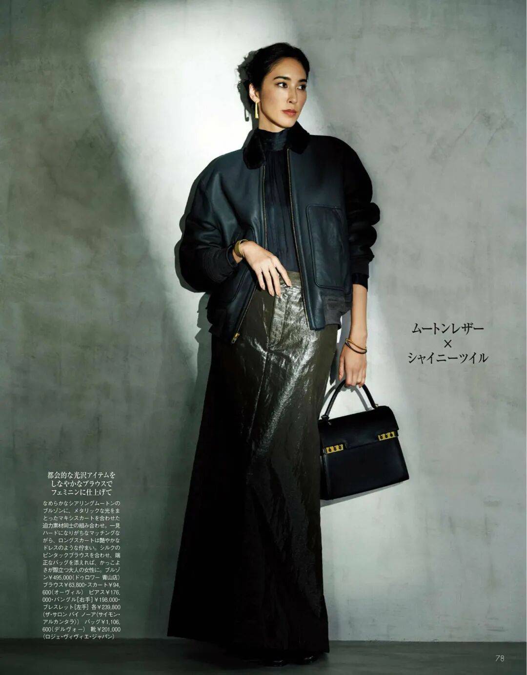 呢质的厚、针织的柔、皮革的亮,它们在同一色系中互相调节,让一身造型既有层次又不显杂。