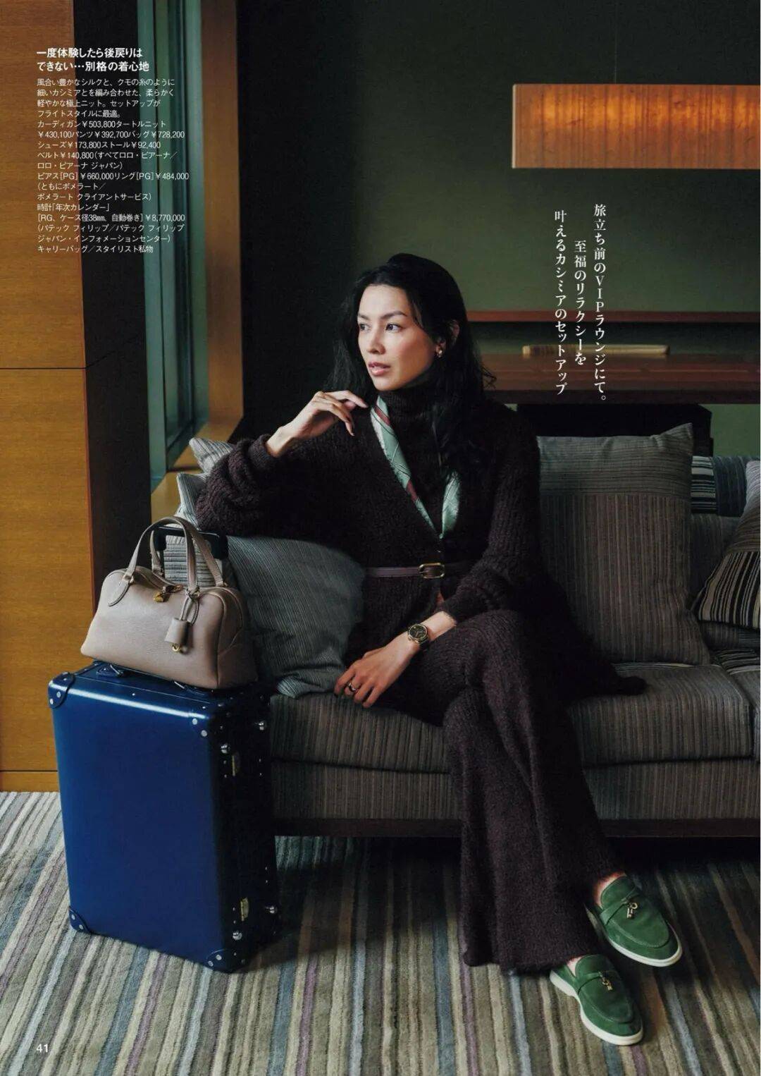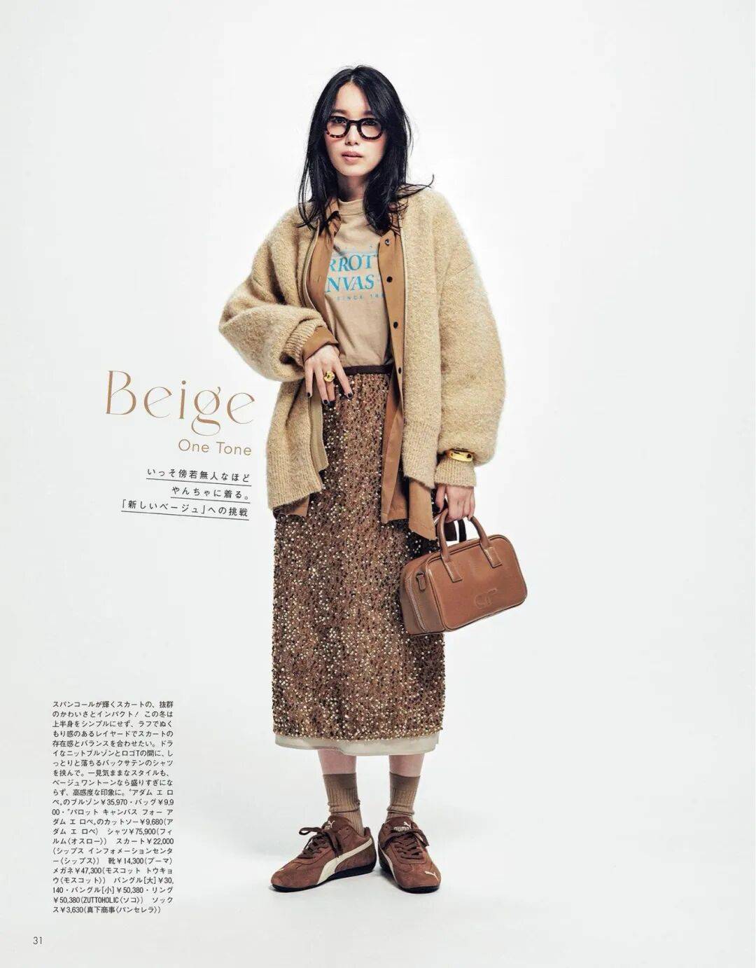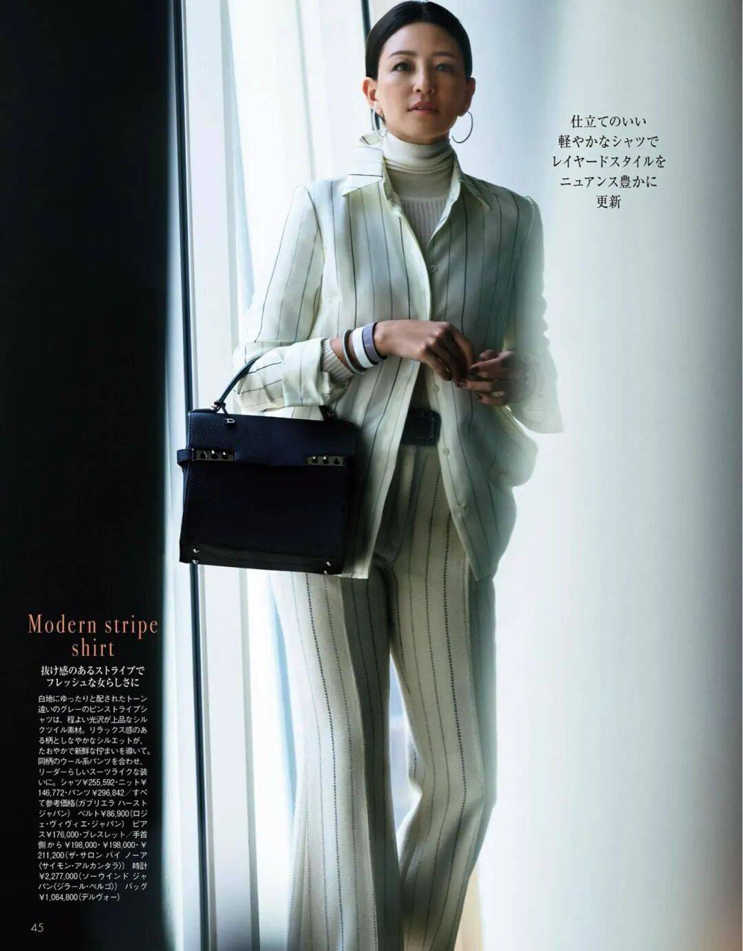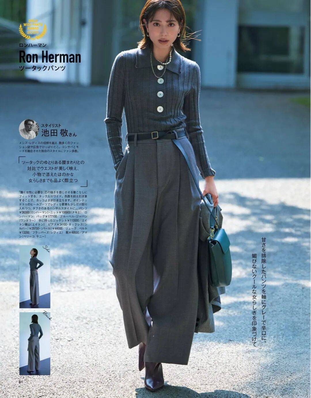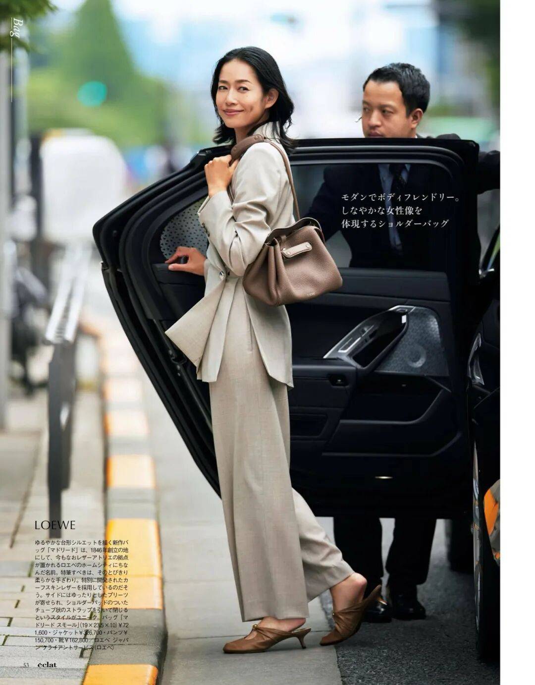 呢质的厚、针织的柔、皮革的亮,它们在同一色系中互相调节,让一身造型既有层次又不显杂。