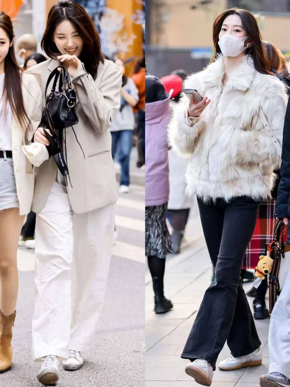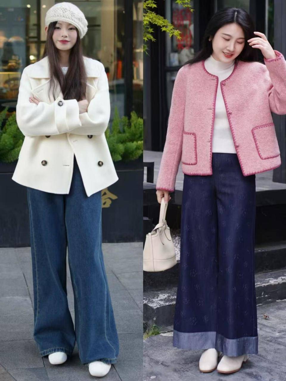 tips③牛仔紧身裤VS白色西装阔腿裤