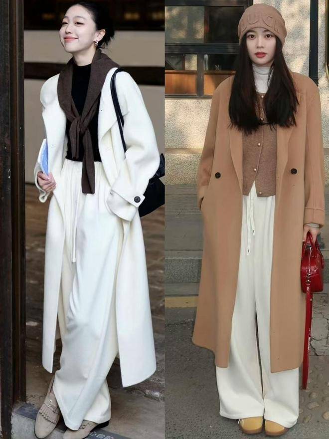 tips①长款大衣搭配白色阔腿裤