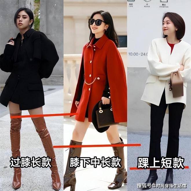 最后关于靴子也有长度之外,冬天的靴子通常是分为三种不同的长度,一种是短靴、中筒靴和长筒靴,但今天我们要选择的是长筒靴,毕竟我们是为了能够修饰腿型,这样才能更好的遮盖住身材的缺点,像是身高低于1.6cm的女性比较适合膝盖以下的长筒靴,而身高超过1.6cm以上或者比例较好的女性还可以尝试穿过膝盖的长筒靴。’