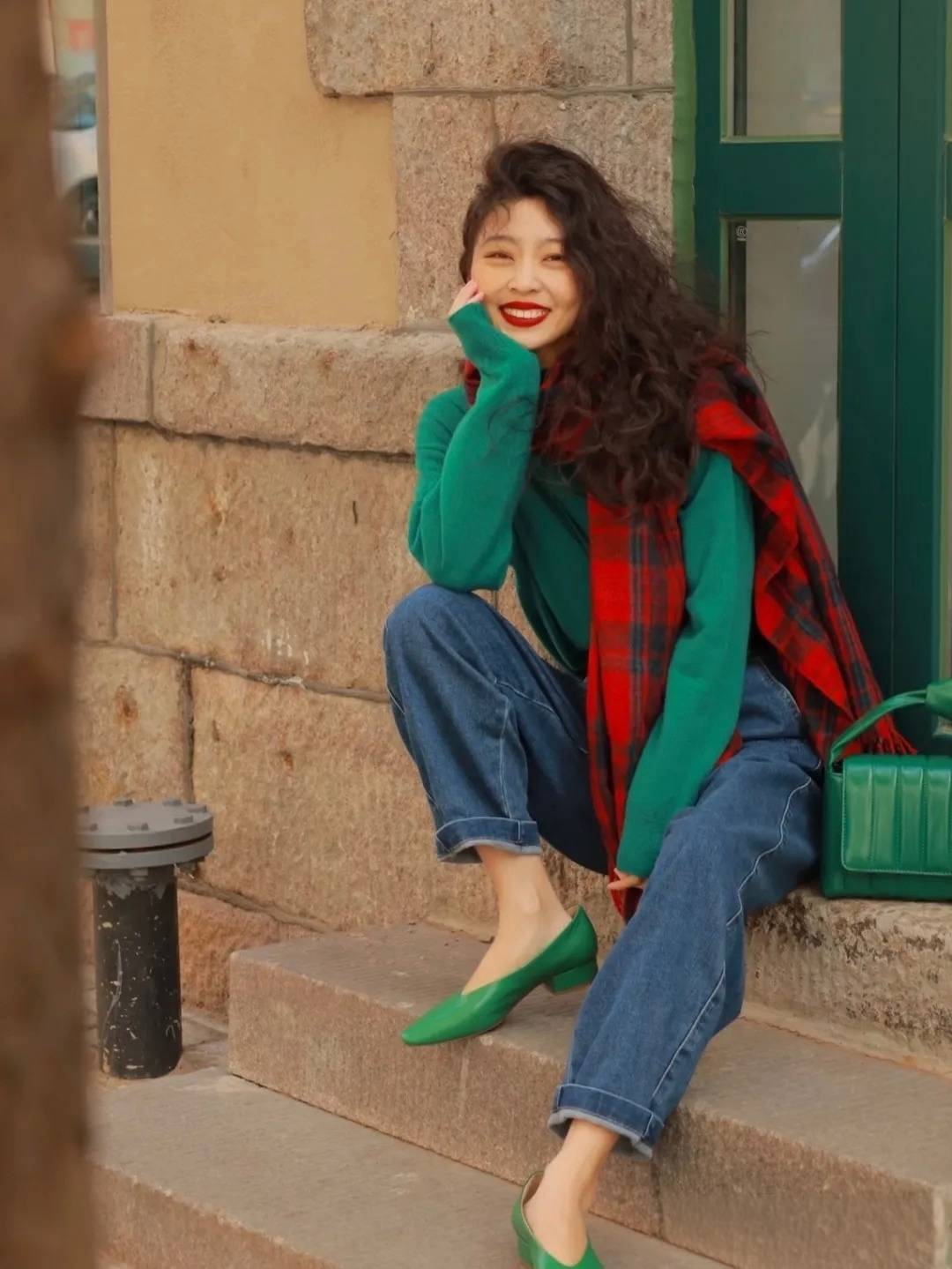 03 墨绿色+红色 (适合所有肤色类型) 这是一组圣诞色组合,墨绿色深沉且富有质感,有着神秘与稳重的气质。而红色充满活力与激情,形成了鲜明的对比。 在这组配色里需要注意的是,尽量以绿色为主色调,用红色点缀,比如红色围巾,鞋子,帽子,手套等,这样能够很好地衬托出红色的鲜艳夺目,显得更加耀眼。