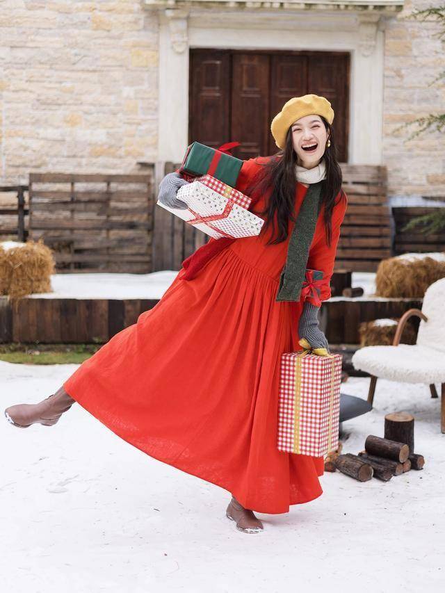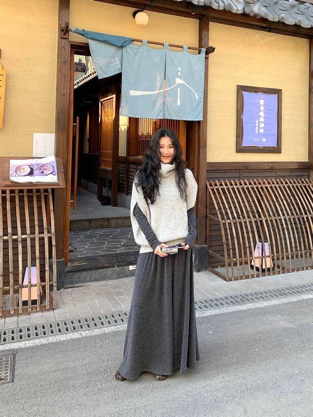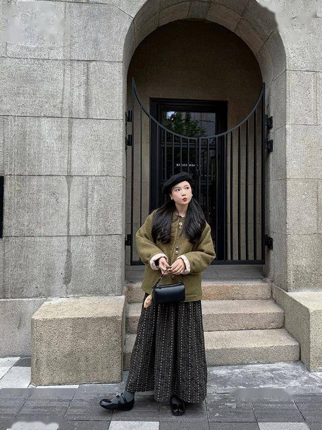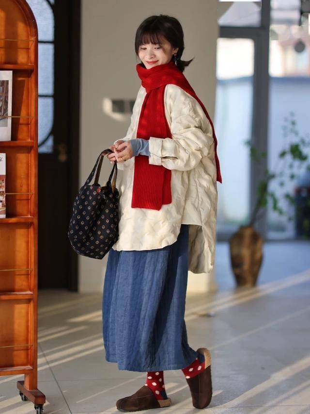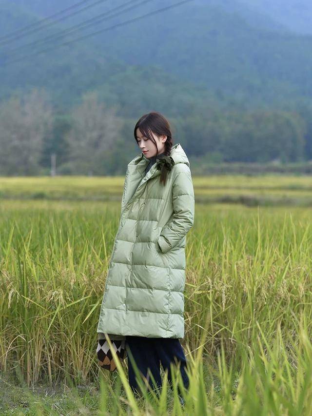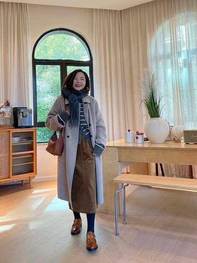 衣领高一点,保暖性十足,裙摆遮鞋面,下半身显得更长。