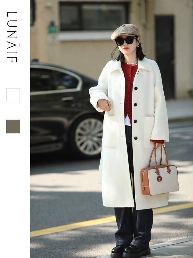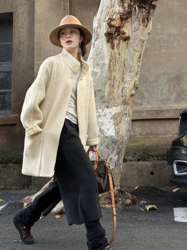 米白色及膝大衣,搭配黑色阔腿裤的那一刻,经典永不过时!