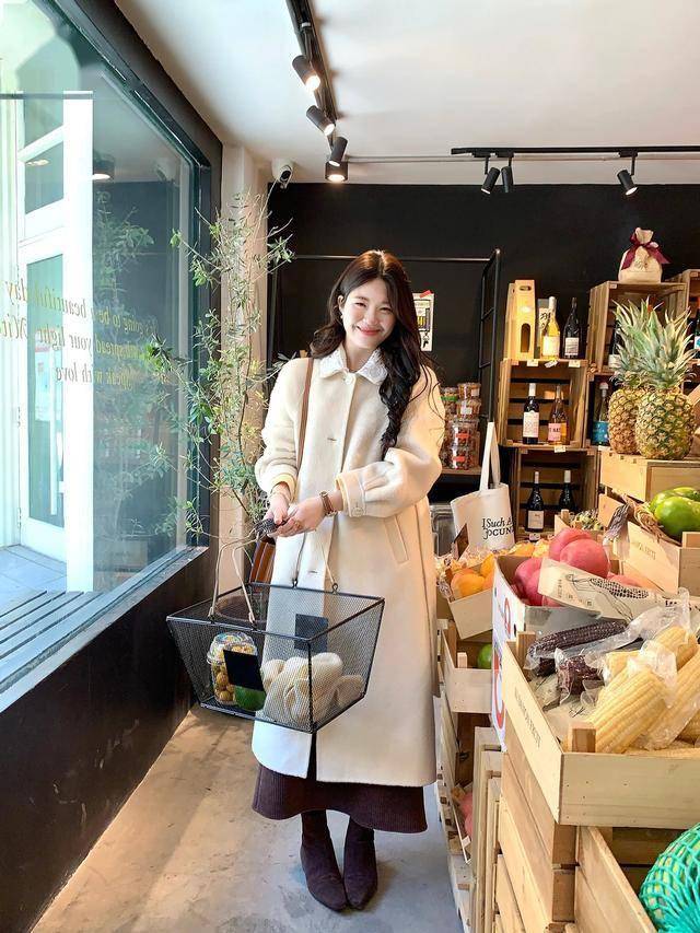 奶油白的长款大衣,更是让你的气质无处可藏,瞬间被温柔包裹,叠搭棕色长裙,露一截裙摆,优雅到骨子里。