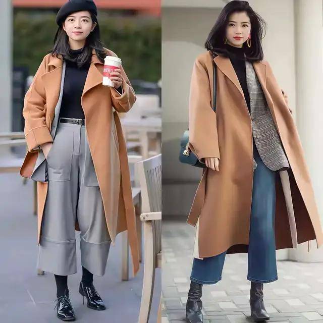 寒冷的冬季,大衣外套是必备单品,穿在身上之后确实能瞬间感受到温暖。选择 H 版型的大衣,再加上阔腿长裤,就可以使得身材线条感非常流畅,不管是梨形身材还是有点微胖的女性,这样穿都可以遮肉显瘦。