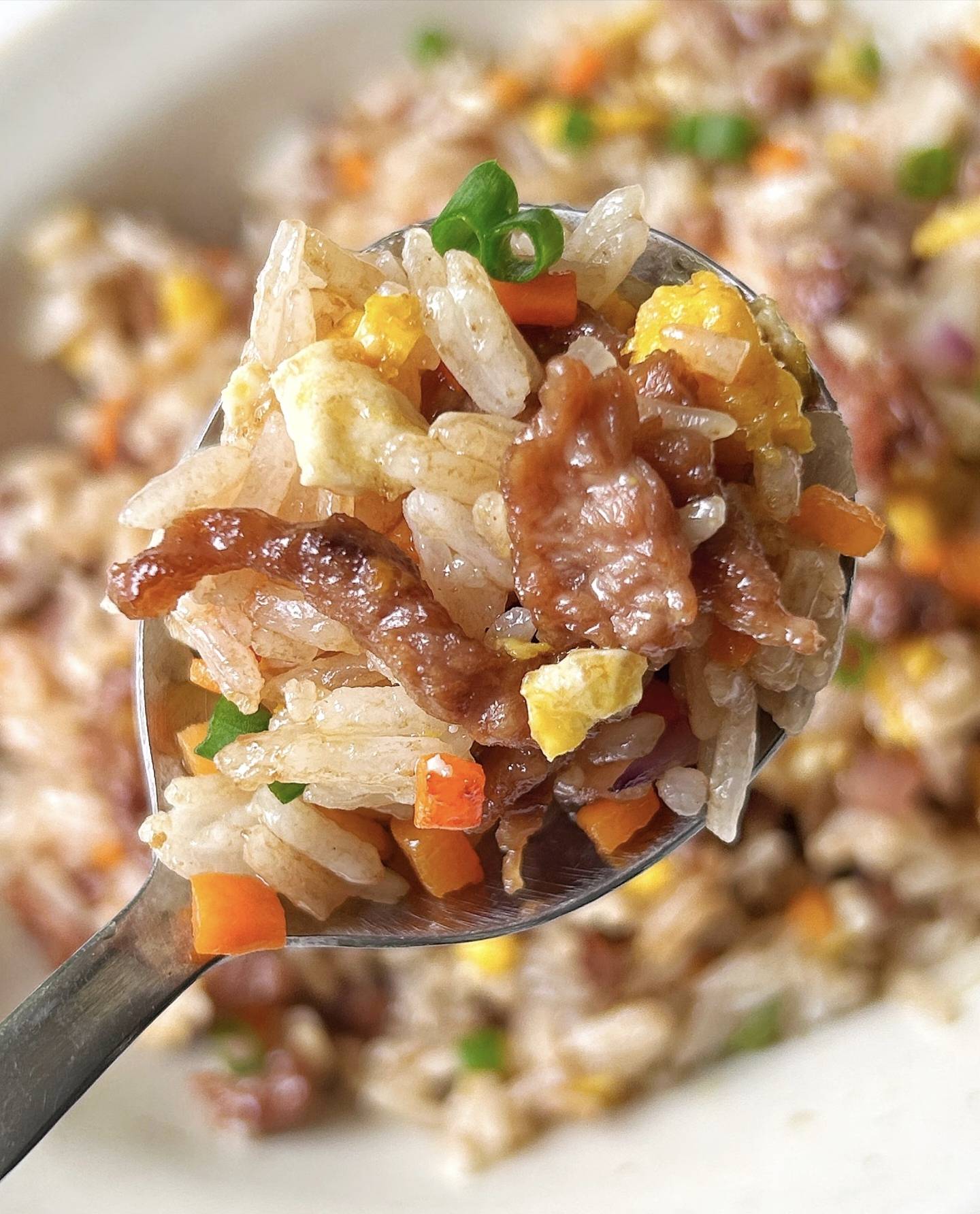 当金黄的米粒裹着酱色在锅中跳跃,牛肉泛着诱人的油光,洋葱的甜香与黑胡椒的辛香在空气中缠绵。盛一勺送入口中,鸡蛋的嫩滑、牛肉的弹牙、米饭的颗粒感在舌尖轮番登场,最后是洋葱的清甜收尾,这哪里是剩饭改造?分明是米其林级别的美味暴击! 下次看到冰箱里的剩饭别发愁,跟着这个方子,五分钟就能变出让全家人眼睛发亮的魔法料理。记得多准备点米饭,因为第一盘绝对不够吃!现在,穿上你的围裙,让锅铲在灶台上跳支舞吧~