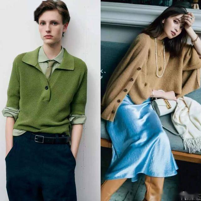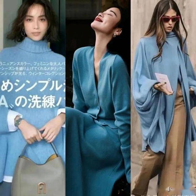 可以有件水蓝色或是雾霾蓝色的毛衣,它会让你的脸看起来更干净清透,演绎出温婉优雅的女人味。