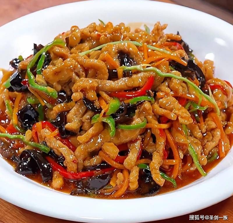 1. 猪里脊肉切丝,用生抽、淀粉腌制。木耳泡发切丝,胡萝卜、青椒切丝。