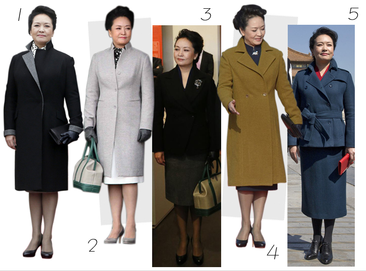 这一身简约的纯色大衣或是套装,在彭丽媛运用精致的胸针、亮色的手袋、内搭撞色衣物等细节装点下,体现出了东方女性在审美上的细腻之处,这同时也能充分展现中国女性在社会上所扮演的角色。