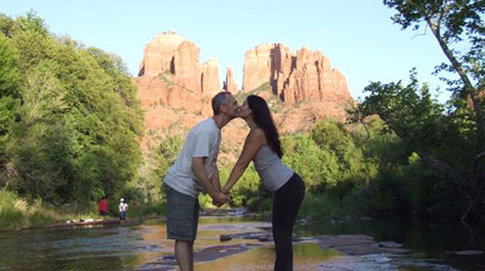 马洁雅和她49岁的男友约翰 哈诺尔一起生活了6年。洁雅和约翰相识于2000年,当时,他们都参加了一个位于俄亥俄州辛辛那堤的密宗瑜伽班。在2001年3月的一次教练的训练课上,他们相爱了。图为马洁雅和男友约翰合影。
