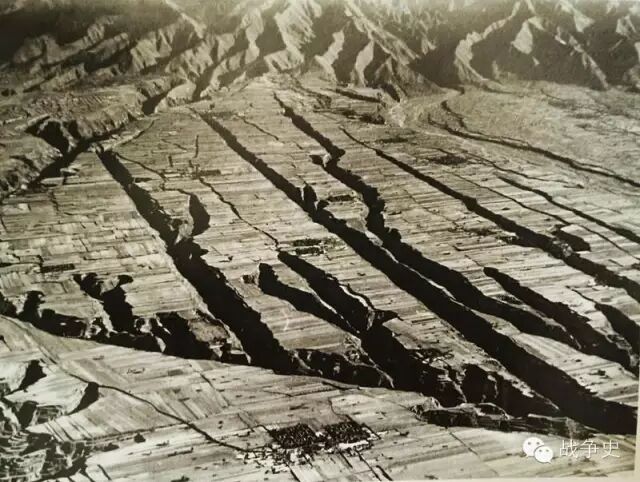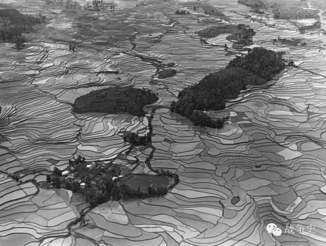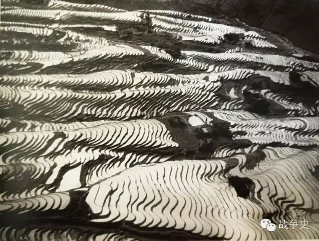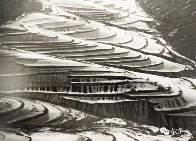 卡斯特尔当时使用的是莱卡公司问世不久的莱卡2系列相机,它采用从左向右的卷帘式快门:“因为驾驶员的座位位于机舱左侧,我只能透过左侧的窗户进行拍摄。这刚好使得快门的卷帘方向与被摄物体移动的方向相反。因此尽管飞机低空飞行时速高达200公里,1/200秒的曝光速度足以满足拍摄需求。”图为他拍摄的甘肃黄土梯田。图片来源:Leica Fotografie International