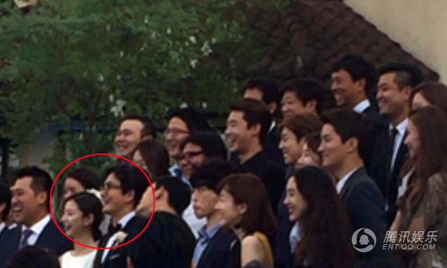 不过,有网友在微博晒出了远距离偷拍的婚礼现场照片。照片中,裴勇俊与身穿白色婚纱的新娘并排站在台阶上
