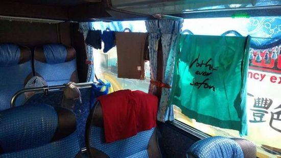 大陆游客直接在游览车上晾晒内衣。(资料图片:台湾东森新闻网)