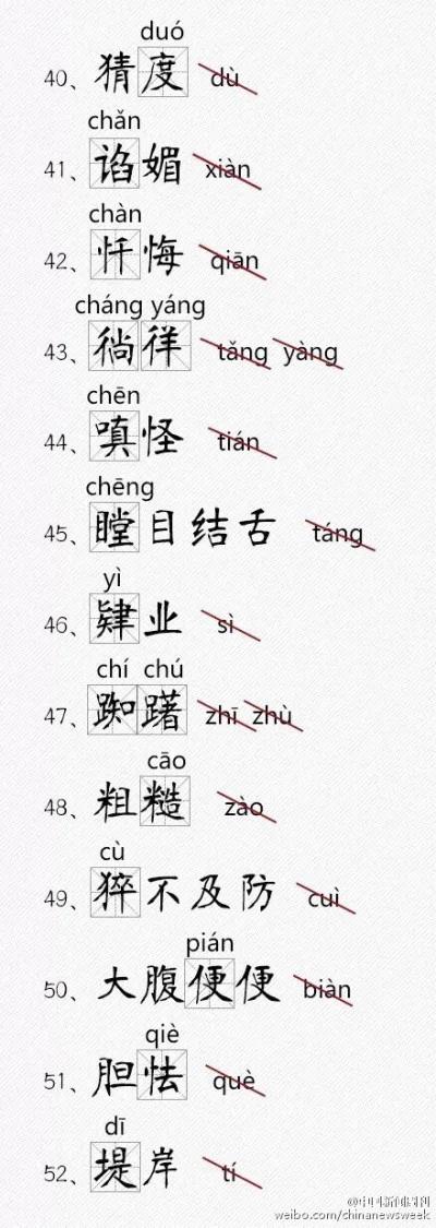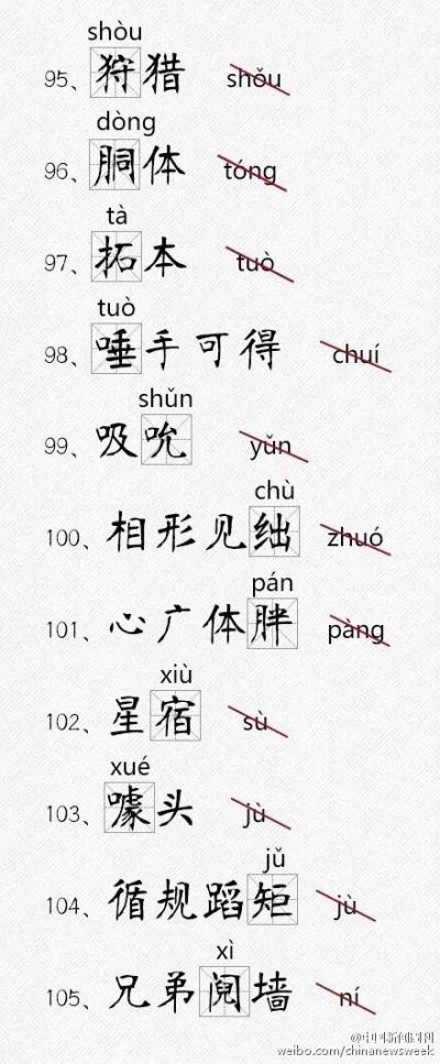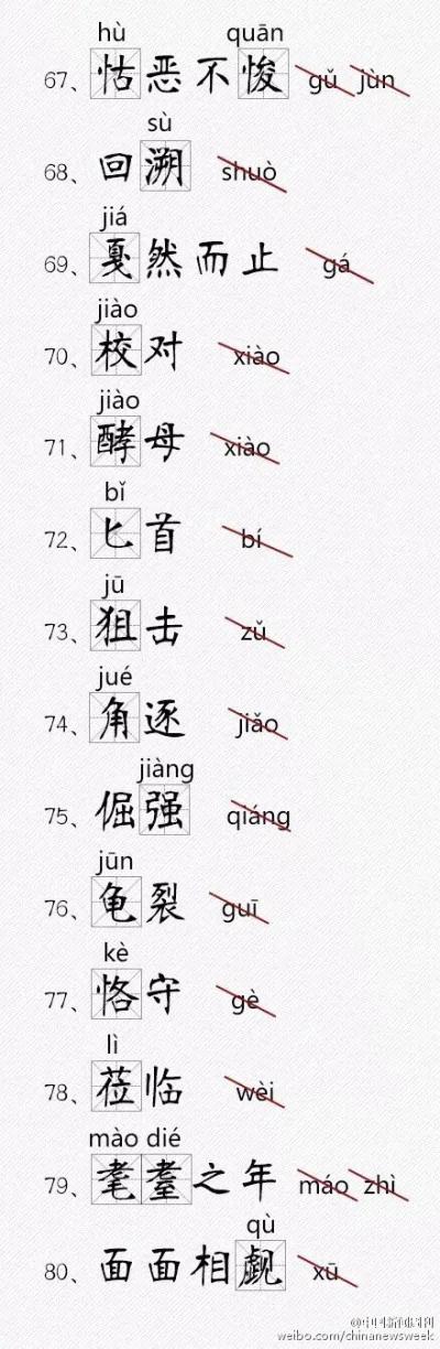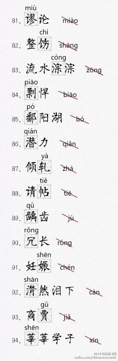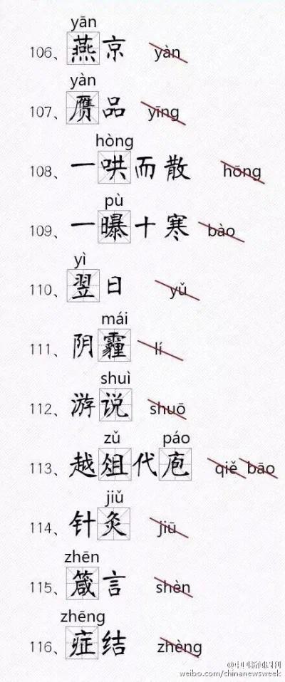 莫说上图这些三个字叠在一起的生僻词,就算我们平日常常见到的一些字,很多人会读错音,其中包括你和我。有网友整理出116个超容易读错的字,一起来看看你是否都能读对。