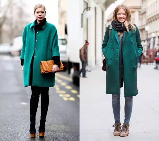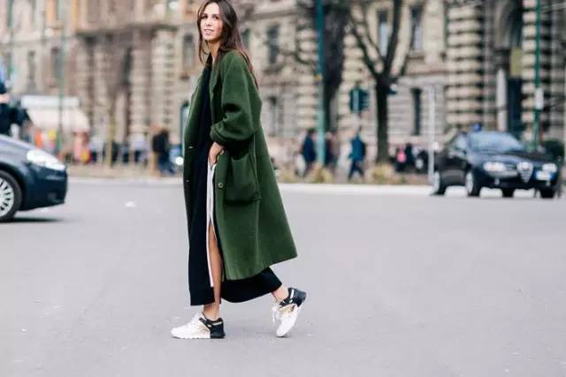 这位Gigi同样是高妹,长至脚踝的大衣配小绿尾,表示毫无压力~