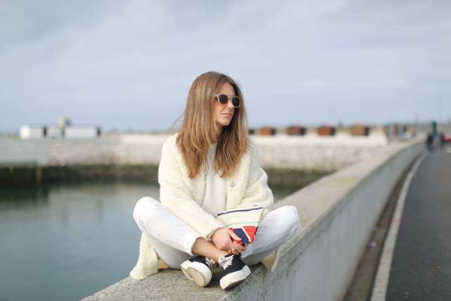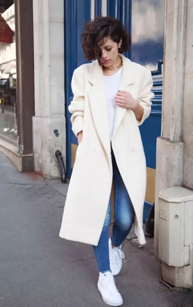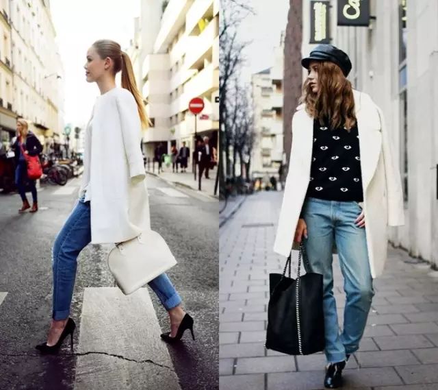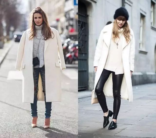 白色大衣披着穿,踩上高跟鞋一样很有范儿。