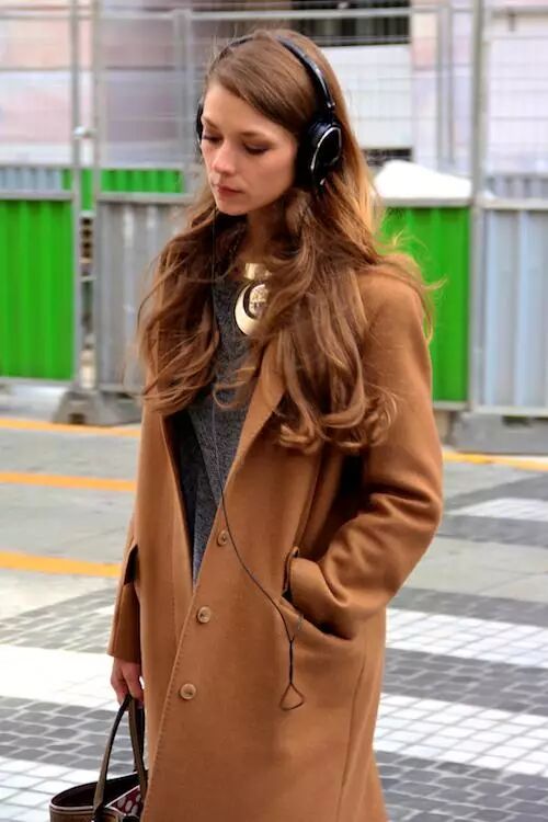 驼色单品叠穿也不错,羊绒大衣版型选对之余,质感特别重要,比如Gigi这件。