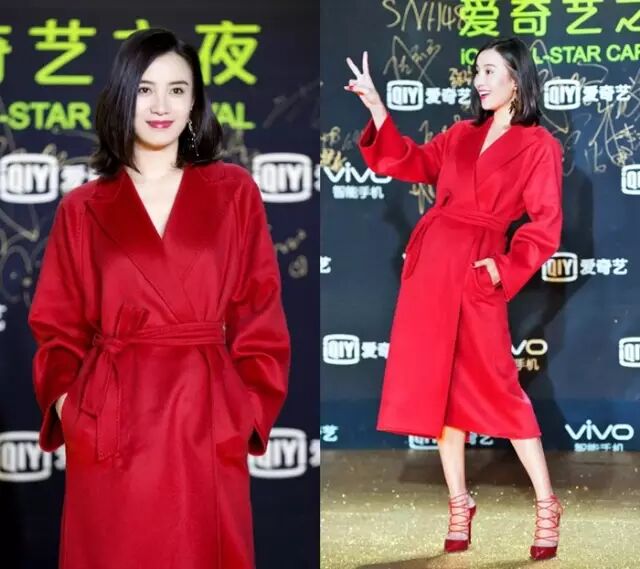 宋佳一身红色浴袍大衣配同色绑带高跟鞋,大胆又性感的穿法。加上超阳光的笑容和一个剪刀手,简直可爱死了~