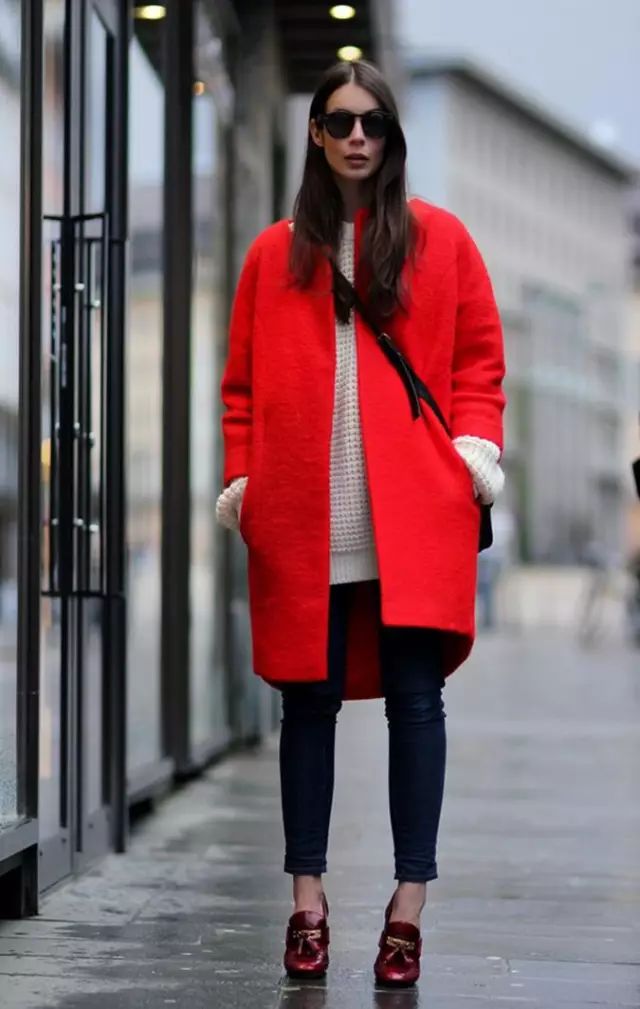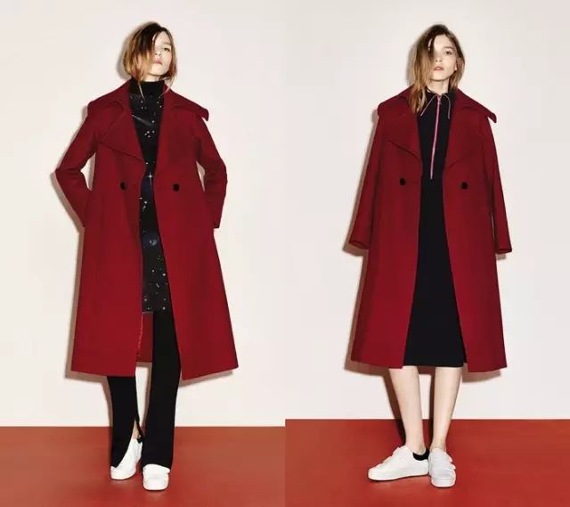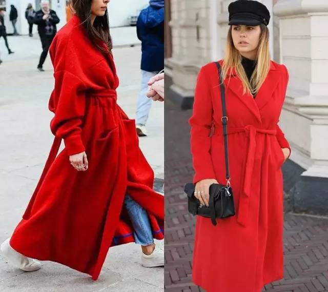 这种没有肩线,看起来圆润的茧形大衣今年火到不行,较小的妹子慎重考虑。如果你的肩够宽能撑起来,挑一件红色的气场绝对强大。记住衣袖不要太长