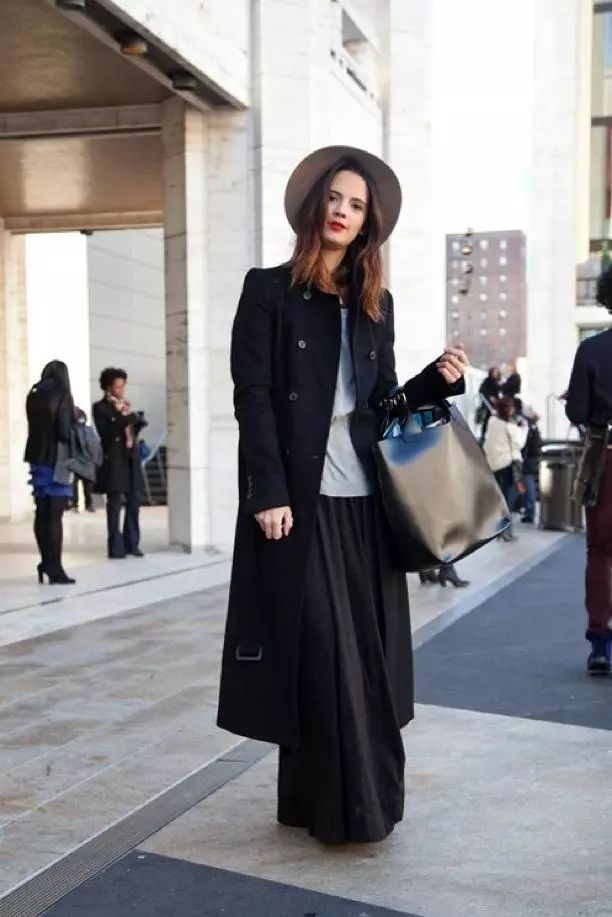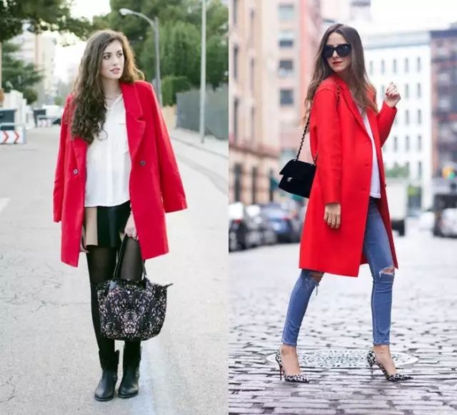 红色的超长大衣穿得带感很简单,坚持用全黑装束做内搭,包括围巾和配件。